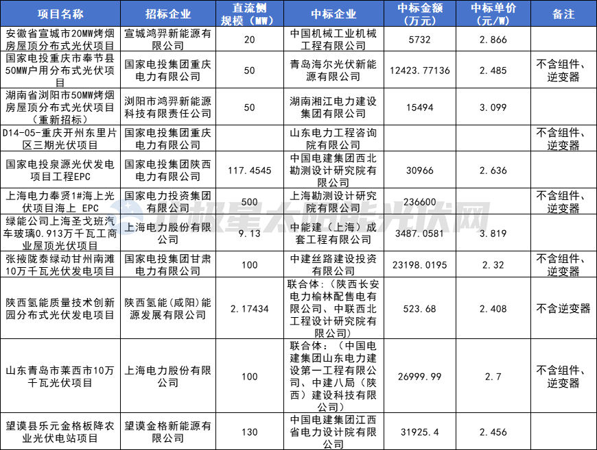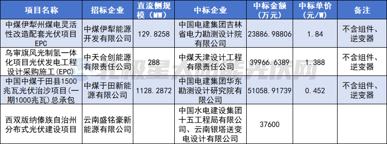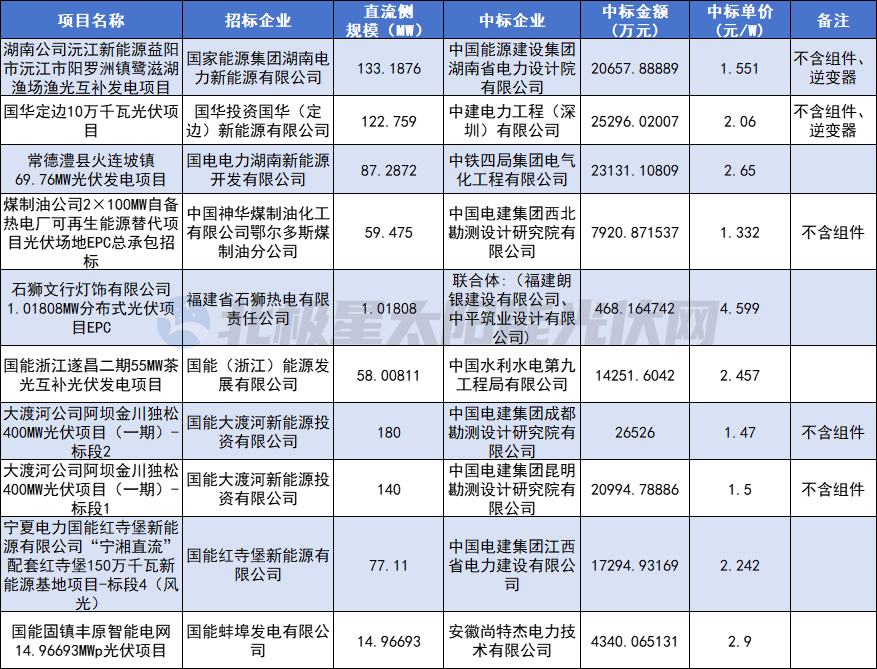 国家能源集团10个EPC项目定标,同样主要是集中式项目。