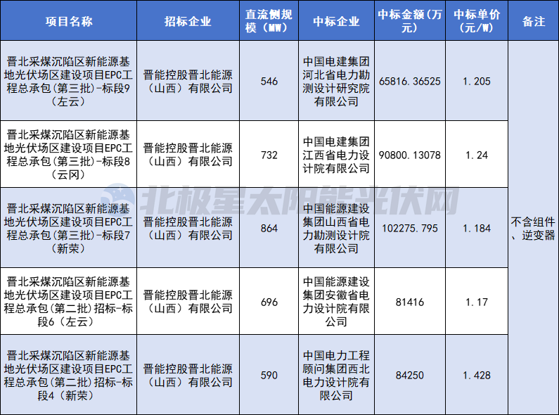 晋北采煤沉陷区新能源基地项目无疑是晋能控股集团的重点项目之一,涉及风光发电总规模6000MW及其配套设施建设。三季度,该基地项目光伏厂区EPC工程的多个标段定标,由中国电建、中国能建旗下公司“包圆”。