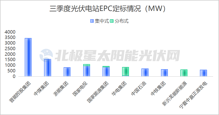 三季度,国家电投12个EPC项目定标,集中式占比88%。